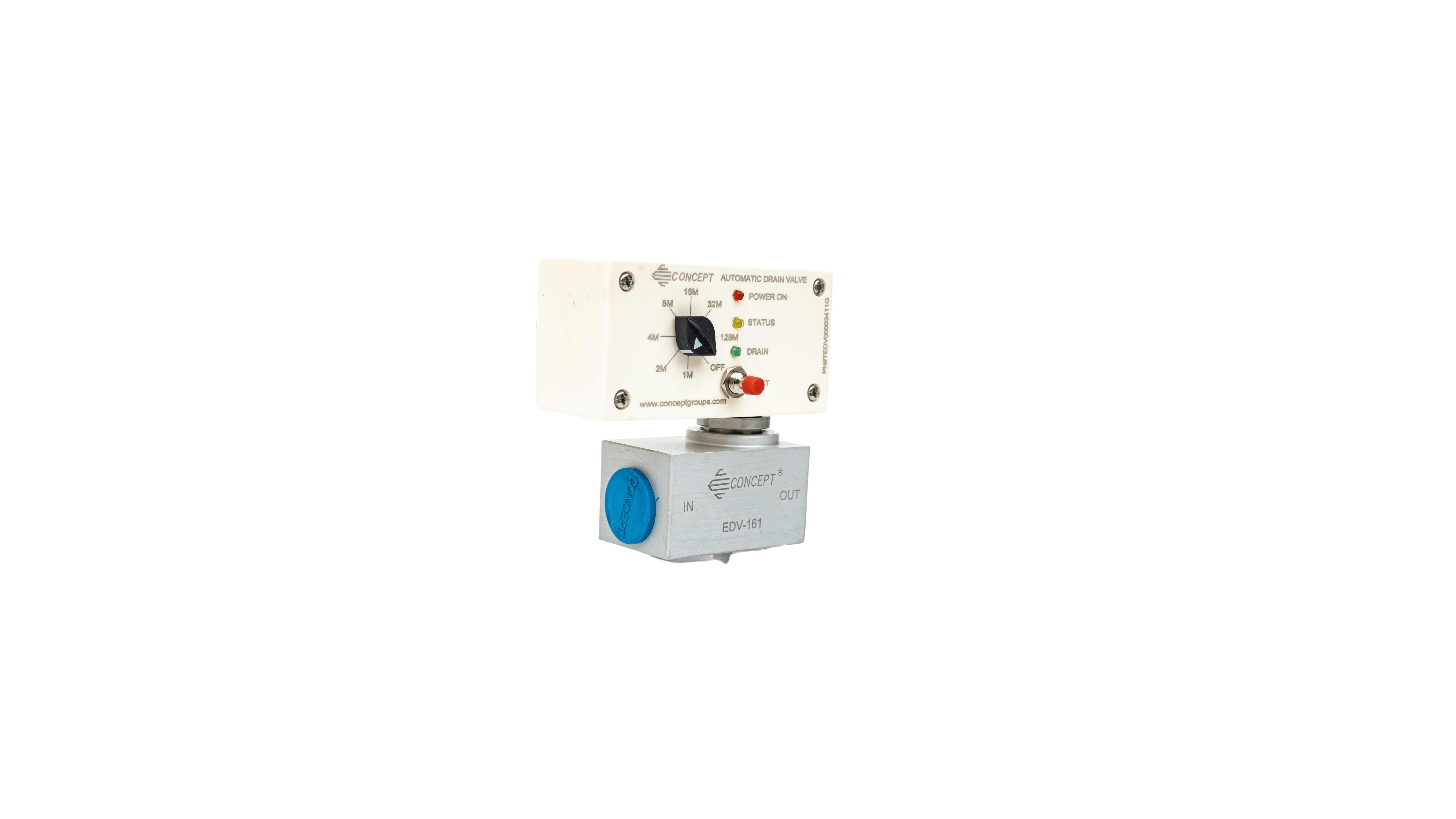 CONCEPT EDV-16X is Designed to Remove Condensate from Compressed Air Systems. Most Suitable for installation on Compressors After Coolers, Drip Legs, Moisture-separator etc. Valve has facility to Drain Manually on Power Failure.