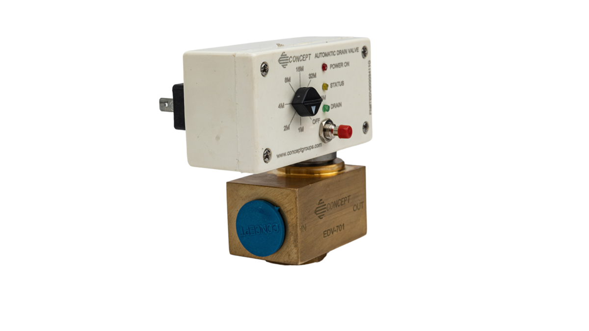 CONCEPT EDV-701 is Designed to Remove Condensate from Compressed Air Systems. Most Suitable for installation on Compressors After Coolers, Drip Legs, Moisture-separator etc. Valve has facility to Drain Manually on Power Failure.
