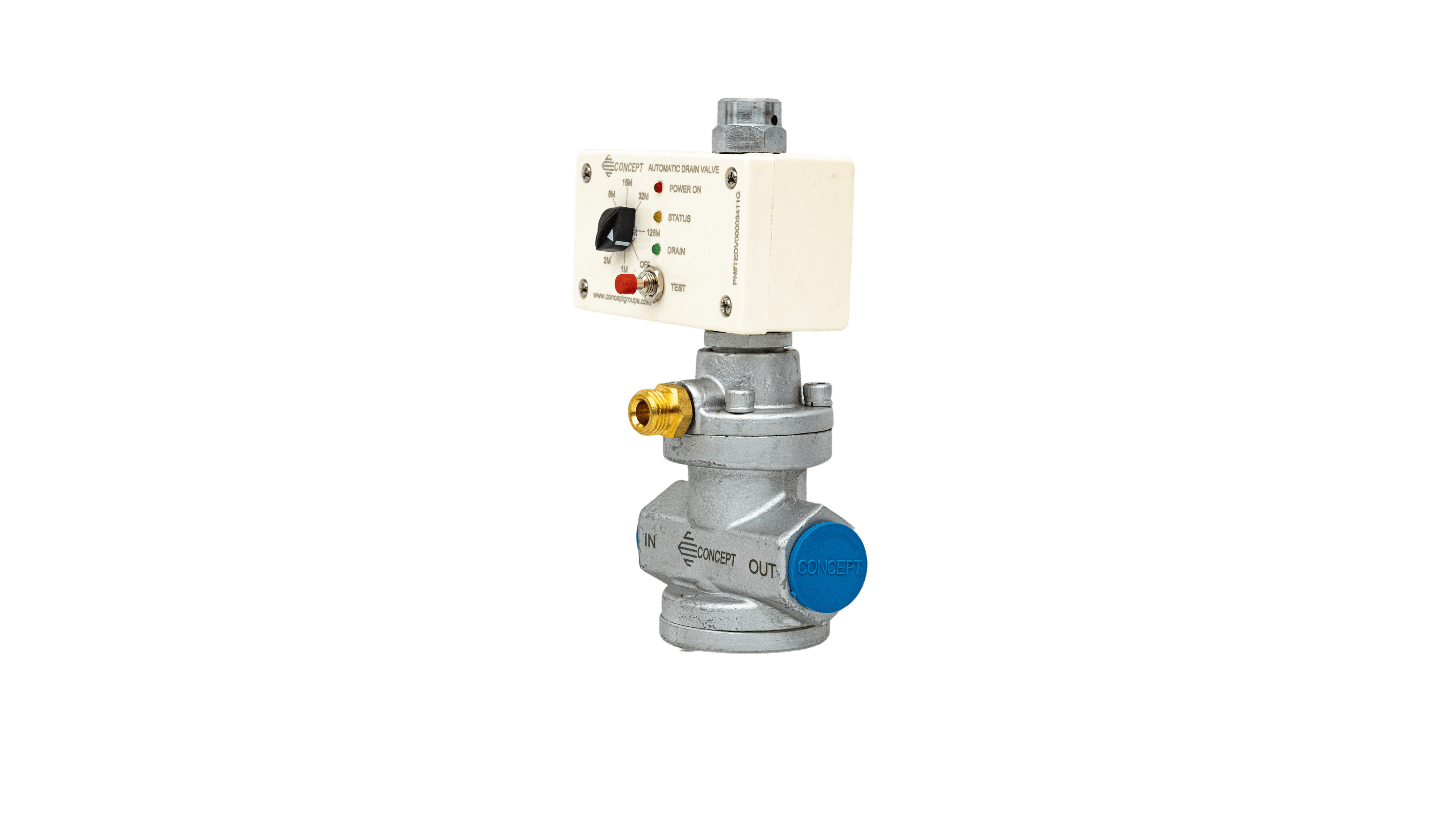 CONCEPT HDV-151 is designed to remove condensate from compressed air systems. Most suitable for installation on compressors, after coolers, drip legs, and moisture separators. The valve has a facility to drain manually on power failure.