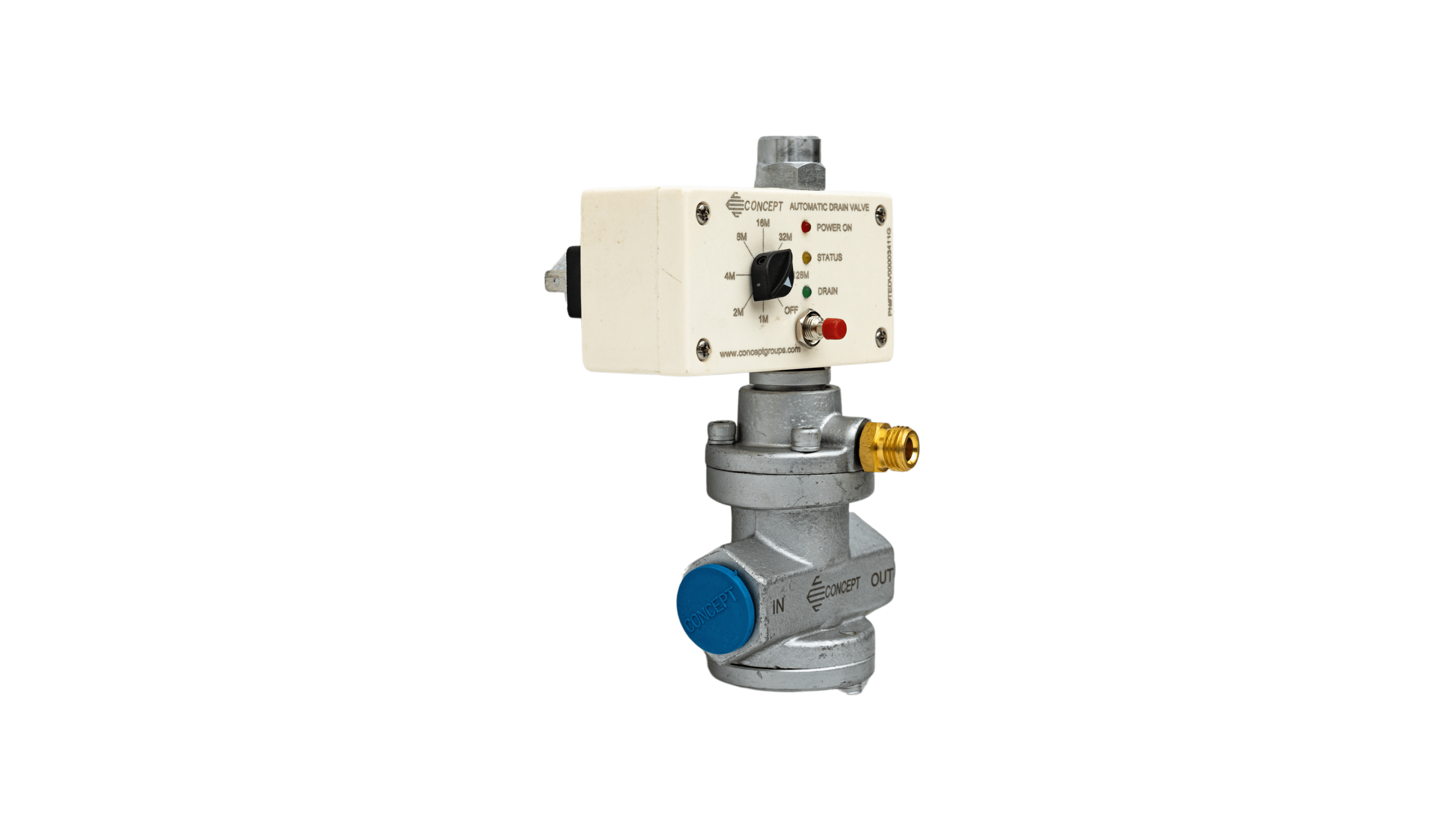 The CONCEPT HDV-151 is a high-performance condensate removal solution designed for compressed air systems. It’s ideal for installations on compressors, after coolers, drip legs, and moisture separators. Built with robust materials, it operates with precision, offering a compact design, multiple LED indicators, and manual drain functionality during power failure.